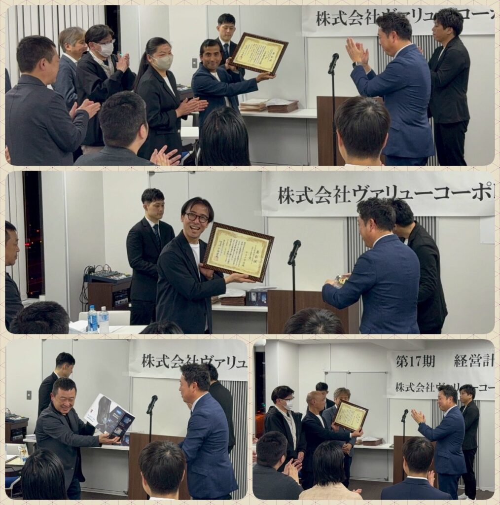 発表会の後は、第16期を支えてくれた社員の皆さんへ、感謝の気持ちを込めて決算賞与が手渡しされました。